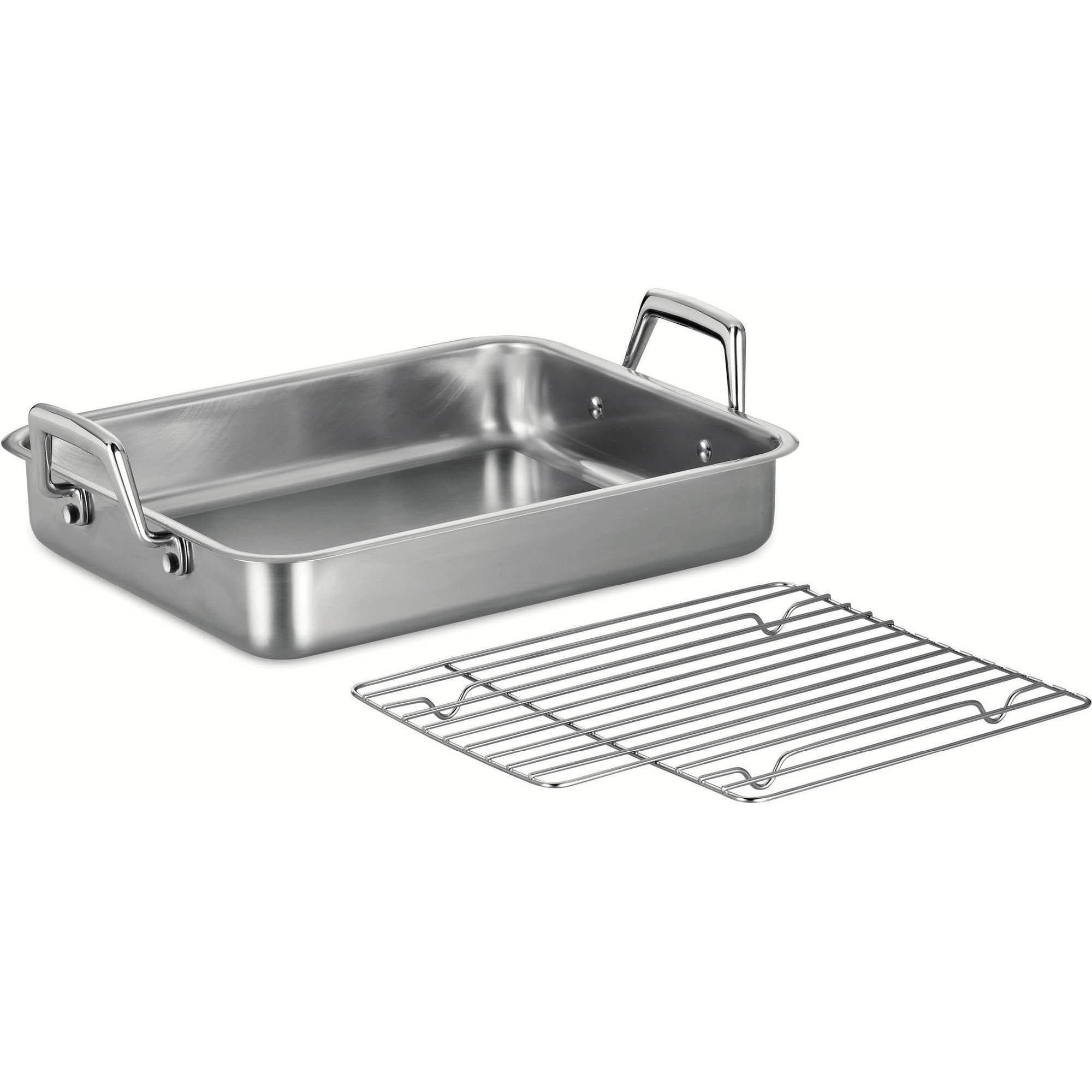 The pan can be made of stainless steel, aluminum, or other metals and have enamel or nonstick coatings. Tramontina Prima 13.5" Roasting Pan with Basting Grill - Walmart.com - Walmart.com